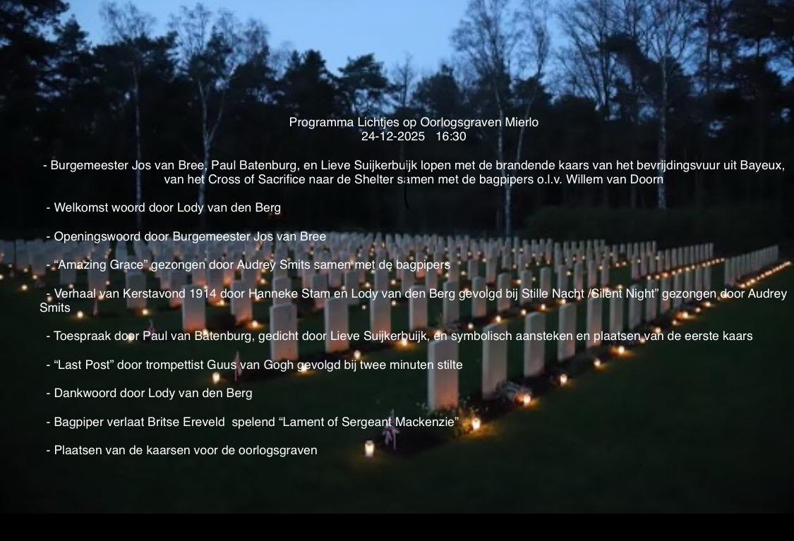 On Christmas Eve, Wednesday, December 24, 2025, at 4:30 PM, we cordially invite you to the seventh annual Candlelight Ceremony at the British War Cemetery at Geldropseweg 68 in Mierlo.